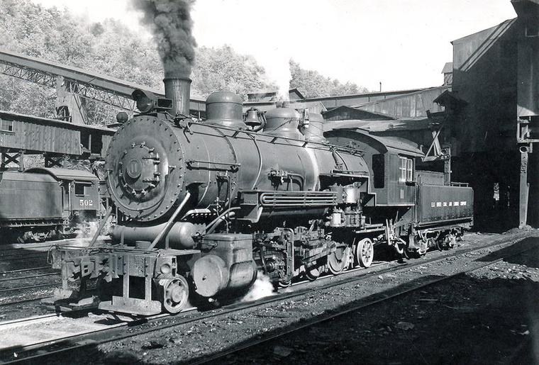 The locomotive are presented here in numerical order. It appears that the engines were numbered in the order that they were acquried. That intersperses the geared engines that worked on the Lilly Fork logging branch with the Mikado's that worked at the Rich Run Mine. For some reason just the Climax engines are listed with an "E" in front of the road number (i.e., E-2, E-3, etc.) and share numbers with engines on the BC&G roster.