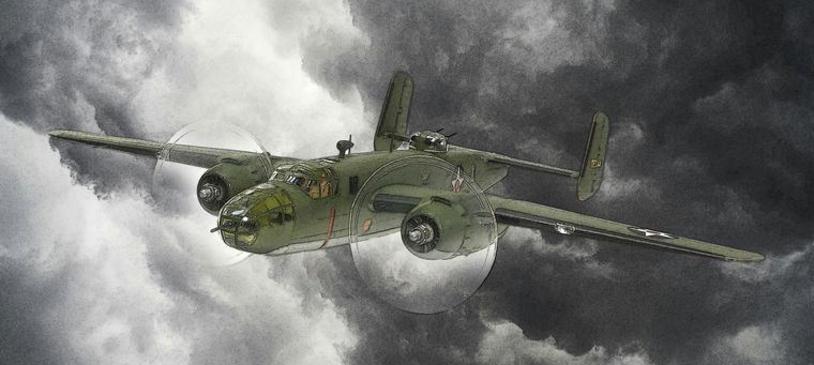 NORTH AMERICAN B-25 MITCHEL - This classic twin-engine bomber was built from a 1:48 Revell kit. Very few modifications were made. The model has a complete interior (right) which, of course, no one can see after the plane is assembled! I used a commercially available paint mask for the nose and cockpit canopy. The plane is lightly weathered with pastel chalks and Tamiya Panel Accent wash.