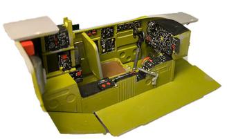 A detailed cockpit is provided in the kit. A jump seat was available to the right of the pilot. The kit included detailed radial engines.